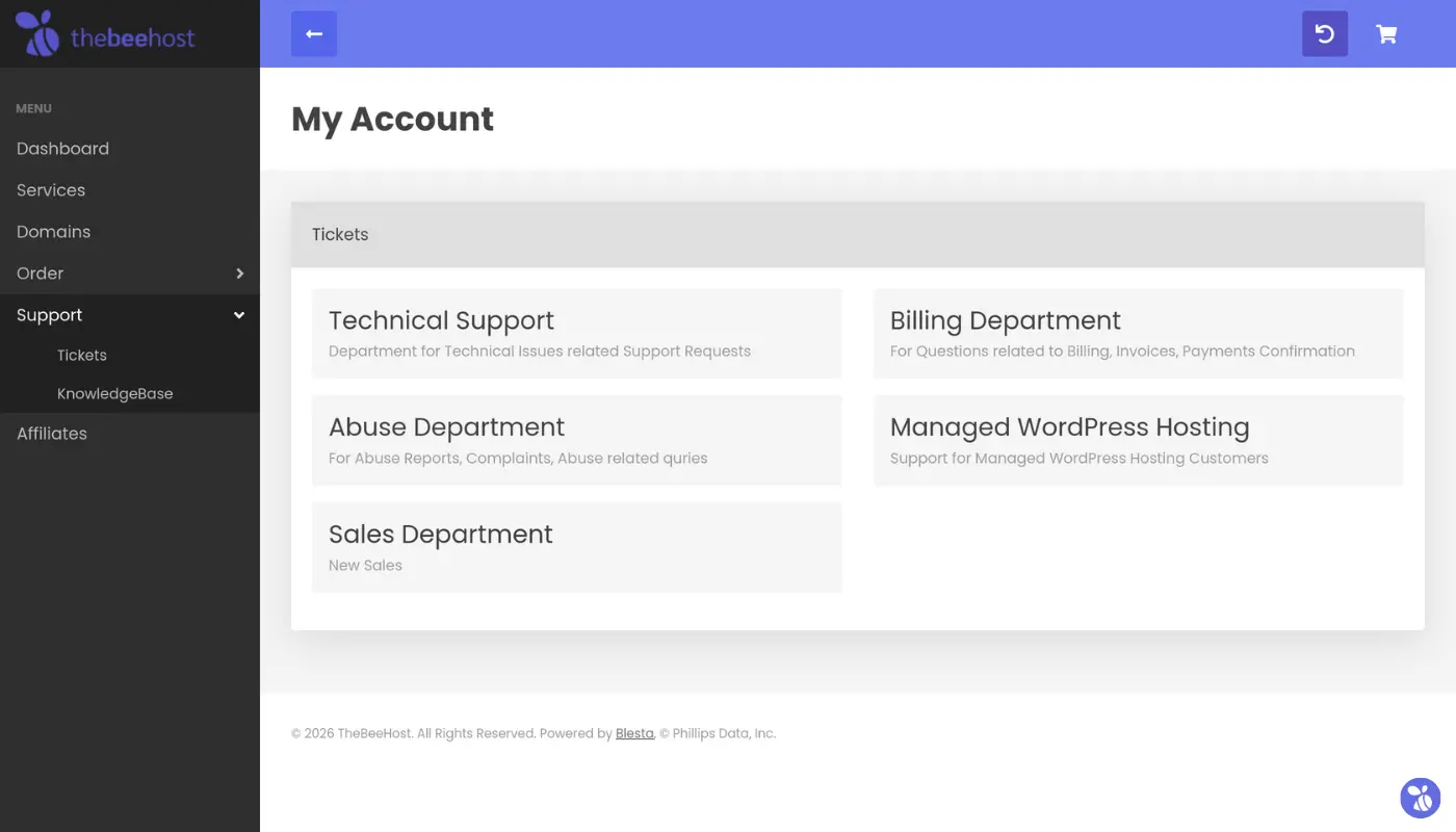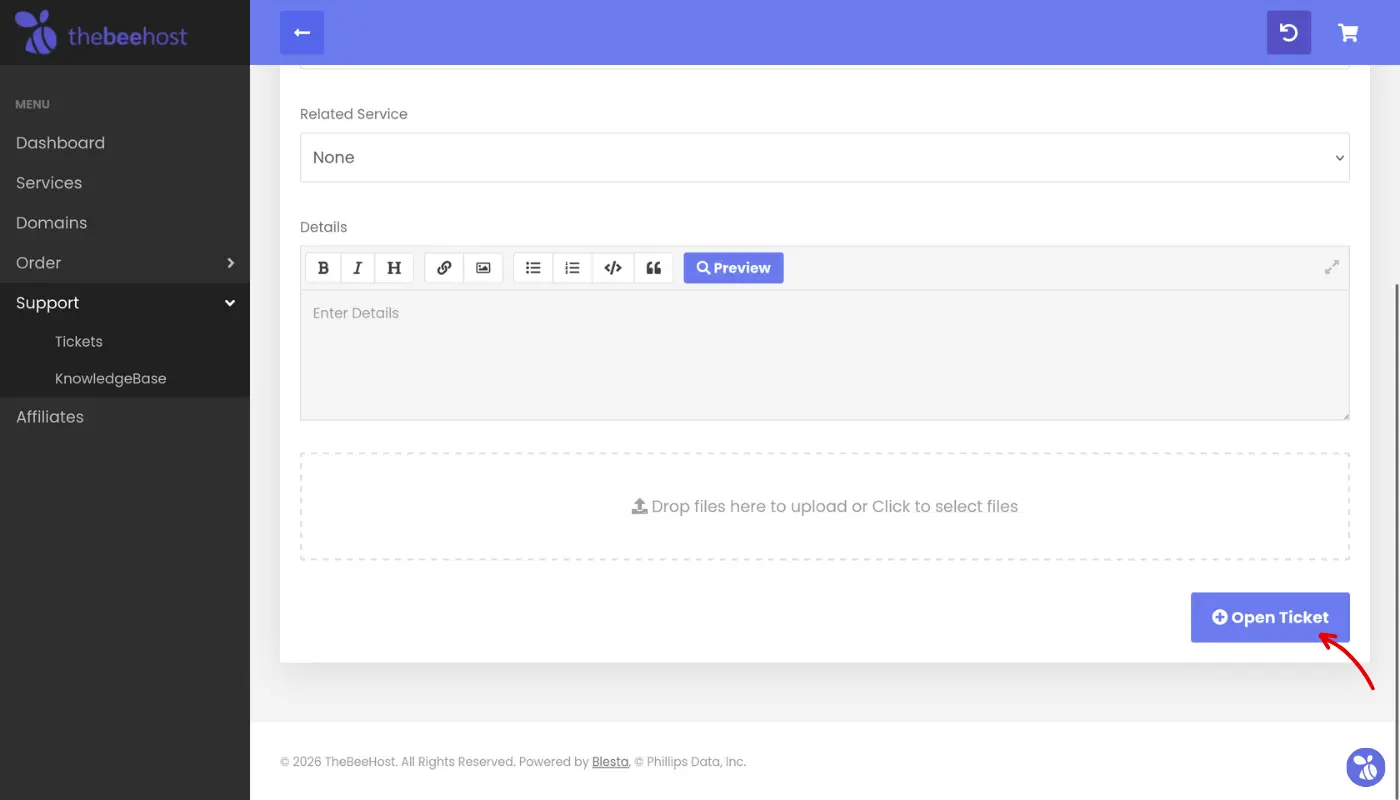 If you need quick support from TheBeeHost team, using a ticket is the way to go! Our team is available 24/7 to help you out.