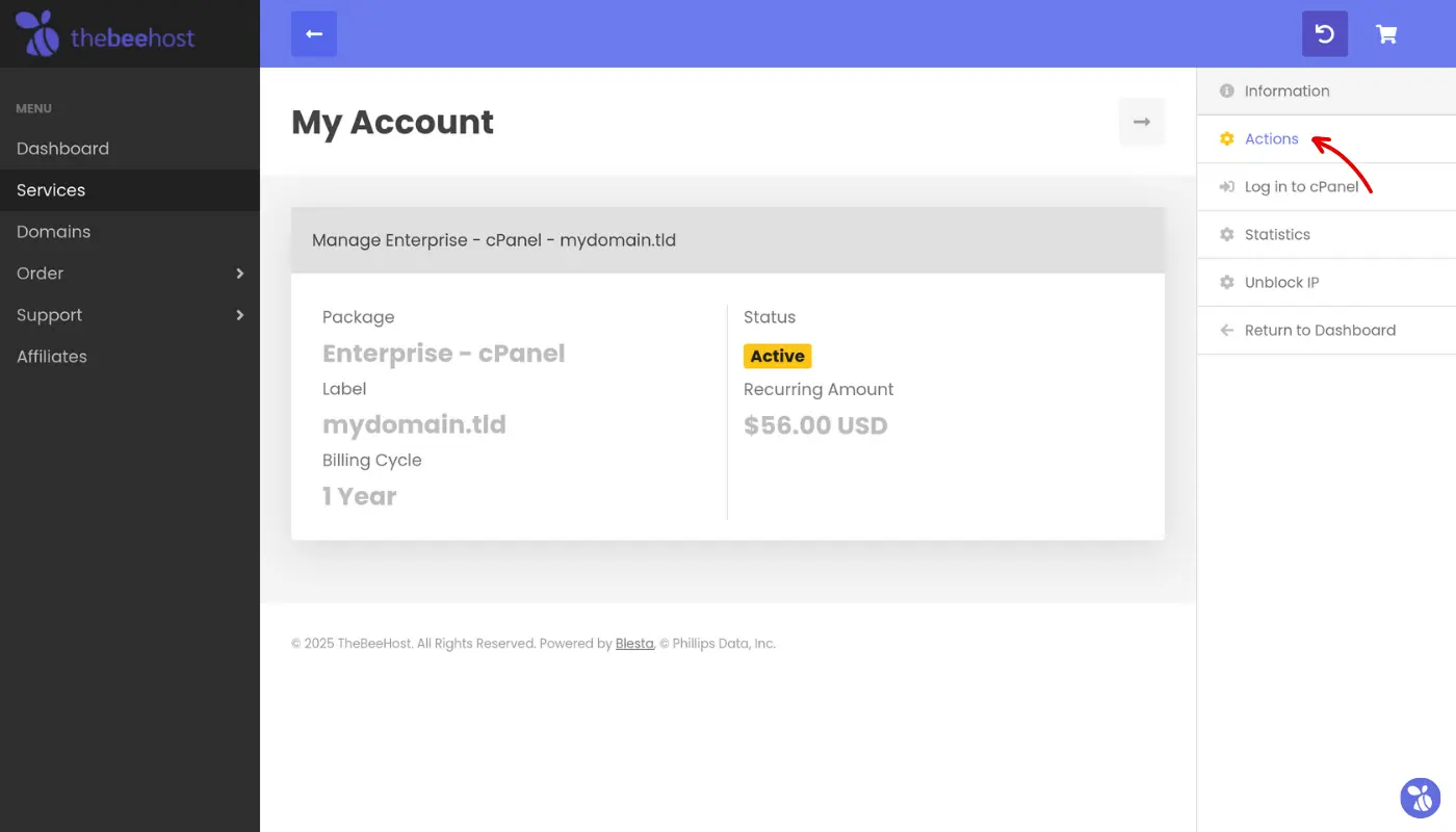 Login to TheBeeHost Client Area with your registered account. Navigate to your Services section.